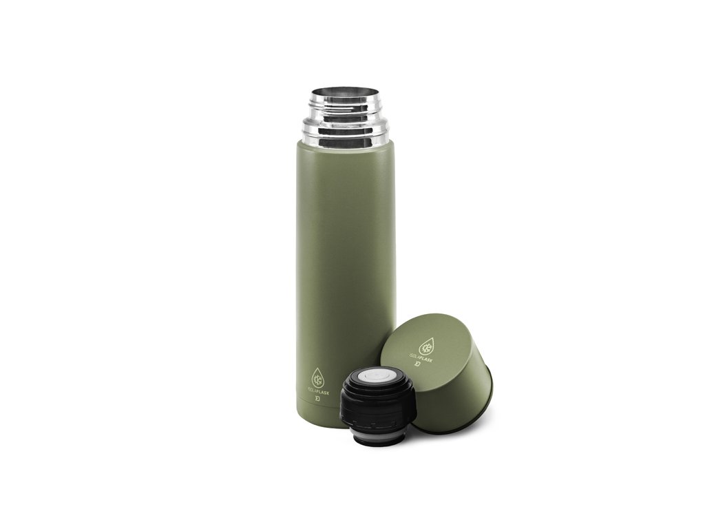Pokud si chcete vychutnat šálek teplé kávy nebo čaje na rybách, či při sportu, neváhejte sáhnout po nové termosce Delphin IsolaFLASK. Dvouplášťová kovová konstrukce dokonale chrání teplotu tekutiny uvnitř, zároveň snese i hrubší zacházení a vyniká tak svou výjimečnou odolností. Samotný víčko slouží zároveň jako pohár, nezapomenete jej tedy nikdy doma! Pod uzávěrem se nachází zátka s takzvaným klik mechanismem, který umožňuje rychlé nalévání, ale zároveň dokonale zabrání rozlití v době nepoužívání. Delphin IsolaFLASK o objemu 750ml v zeleném designu Vám dokonale zapadne do kolekce C2G a už nikdy nezůstanete na suchu i v těch nejchladnějších dnech.Doplňkové parametry