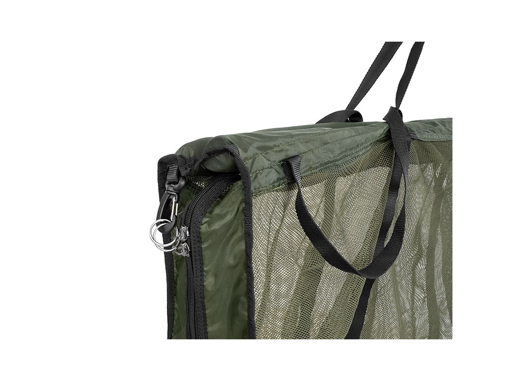 Praktická pomůcka vhodná pro bezpečné a šetrné vážení či krátkodobé přechovávání šupinatých úlovků nyní i v delším provedení XXL. Tak jako všechny produkty ze série CLASSA i tato vážící taška se vyznačuje kvalitním zpracováním, funkčností a velmi příjemnou cenou. Ramena tašky jsou po celé délce opatřena plováky, což umožňuje bezpečně přechovávat úlovek ve vodě, během přípravy například na focení. Hlavní část je tvořena jemnou síťovinou, která je k rybám maximálně šetrná. Díky použitému materiálu při zvedání a manipulaci s rybou všechna voda zevnitř vyteče, což umožňuje přesné vážení. Síťka je vyztužena dvěma černými textilními popruhy přecházejícími do středového úchopu. Díky dlouhým úchopům lze tašku jednoduše zavěsit na váhu. Taška je navíc opatřena textilními úchopy na obou stranách, pro snadné zvedání a přenášení. Masivní zip je po obou bocích a také na vrchní části, to znamená, že CWS dokážete téměř celou rozzipovat pro příjemnější manipulaci s rybou. Samozřejmostí je kotevní šňůra o délce 5m a se závitem na konci. Díky tomuto systému je kotvení na břehu velmi bezpečné. Šňůra je umístěna v integrovaném, kompaktním sáčku na boku tašky. Kromě toho se na boku nachází klip, sloužící k fixování běžců zipu, aby nedošlo k nechtěnému otevření tašky a úniku úlovku. Technické parametry: Rozměry 125x60x16cm Transportní rozměry: 125x12x12cm Hmotnost: 1060gDoplňkové parametry