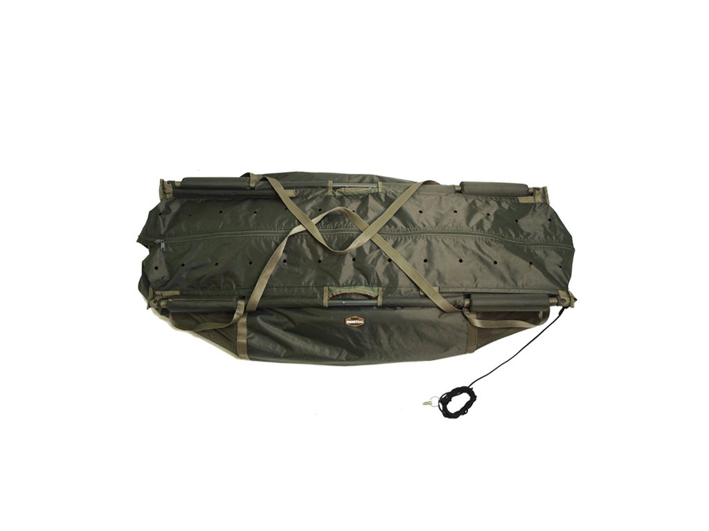 Tato vážící taška je do detailů propracovaný klenot každé kaprařské výbavy. Nosným základem je vrchní pevná část z hliníkových trubek. Díky důmyslnému mechanismu je možné tyto trubky jednoduše rozložit, aby při transportu nezabírali moc místa. Na trubkách jsou navíc uchycené 4 plaváky, což ve spojitosti s perforovanými částmi tašky zaručí, že je v ní možné úlovek ve vodě i přechovávat, případně z ní úlovek i pohodlně pouštět zpět do vody. Golem samozřejmě disponuje kotvící šňůrou o délce 2,5m s ukončením na závit, pro ukotvení tašky na břehu. Taška má po celé vrchní straně průběžný zip, takže jí je možné dokonale zavřít. Díky dlouhému textilnímu úchopu je zavěšení na vážící trojnožku jednoduché a komfortní. Pro běžné přenášení výborně poslouží kratší popruhy umístěné v rozích tašky. Technické parametry: Rozměry: 120x50x30cm Transportní rozměry: 65x15x15cm Hmotnost: 1,5kg Nosnost: 50kgDoplňkové parametry
