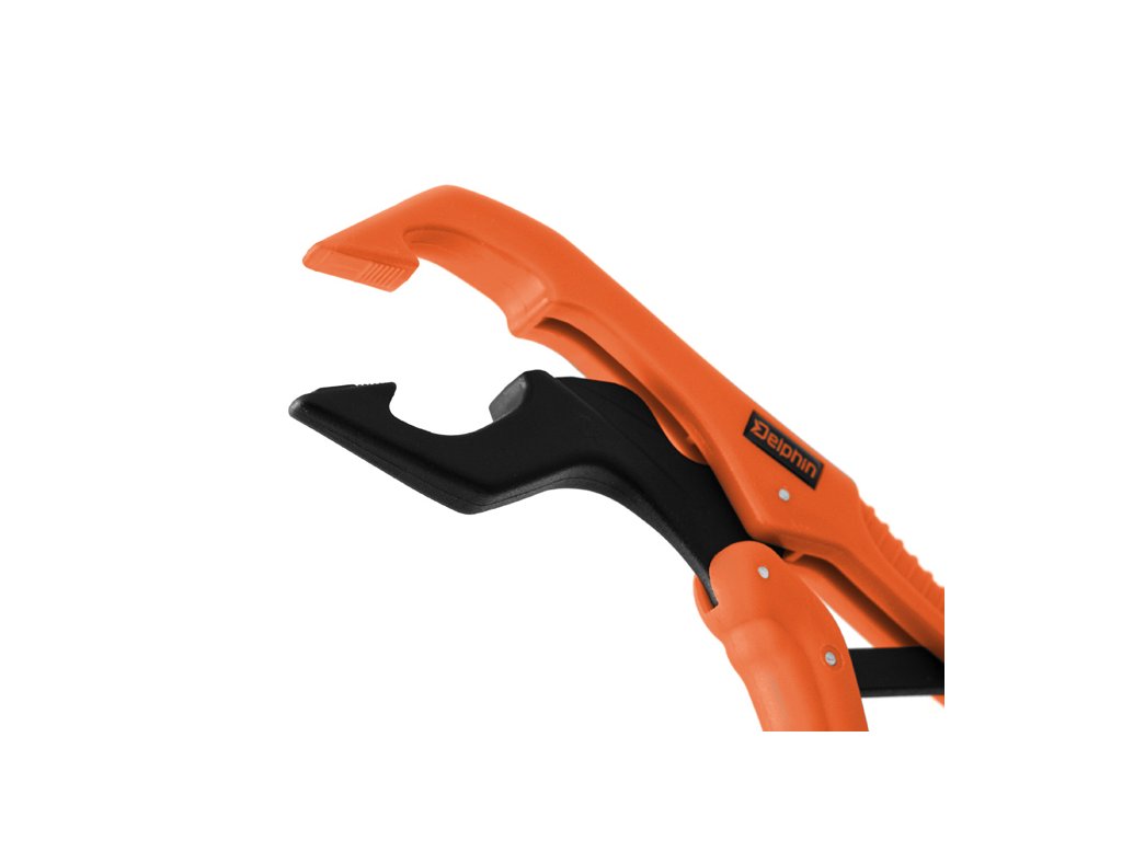 Vylovovací kleště Delphin ATAK! Fish Grippers jsou určeny pro vylovování dravých ryb ze břehu nebo z člunu. Jejich délka je 25cm, a proto s nimi dokážete vylovit i ty největší štiky nebo candáty. Vyhotovené jsou z plastu oranžové barvy, který je dobře viditelný za každých podmínek. Spodní pohyblivá čelist je černé barvy. S našimi vylovovacími kleštěmi se už nemusíte bát poranění a můžete s nimi rybu bezpečně vylovit a zbavit ji háčků. Na jednom rameni rukojeti je otvor s provlečenou šňůrkou a zatahovacím mechanismem pro upevnění na ruku.Doplňkové parametry