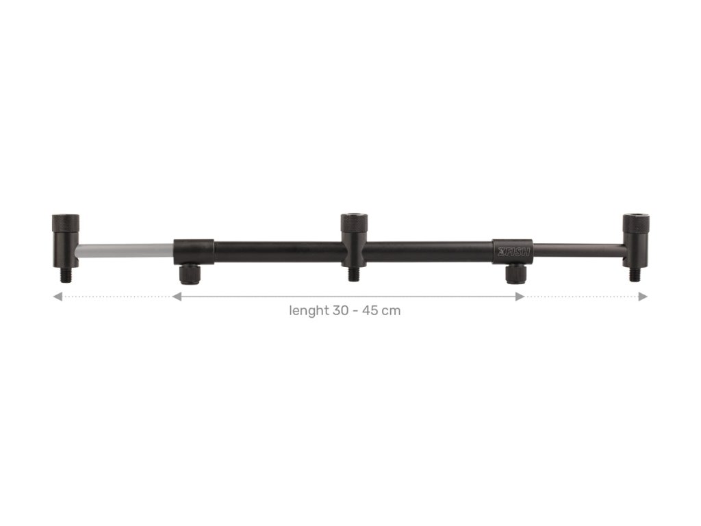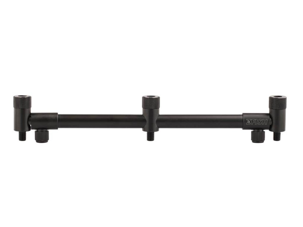 ZFISH Buzzer Bar ZFX 3 Rods je velice precizně zpracovaná, kvalitní a pevná hliníková hrazda v černém matném provedení. Velkou výhodou této hrazdy jsou tzv. integrované závity, které Vám umožní jednoduše a hlavně přesně srovnat úhel hlásičů vůči hrazdě a stojanu. Další výhodou je teleskopicky nastavitelná šíře 31-45 cm a navíc hrazdu lze ukotvit k zemi pomocí jedné, dvou nebo tří závitových vidliček. Díky tomu již nepotřebujete žádný kotvící kříž a nemusíte mít obavy, že se vám hrazda bude protáčet při prudkém záběru.