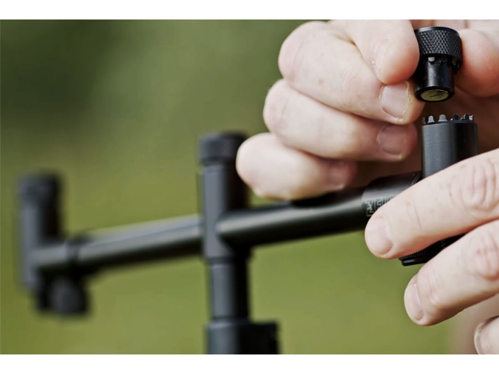 ZFISH Magsafe Buzzer Bar 3 Rods je velice precizně zpracovaná, kvalitní a pevná hliníková hrazda v černém matném provedení. Velkou výhodou této hrazdy jsou integrované magnetické adaptéry/rychlospojky k hlásičům, které Vám velice usnadní montáž a demontáž hlásičů. Další výhodou je teleskopicky nastavitelná šíře 31-45 cm a navíc hrazdu lze ukotvit k zemi pomocí jedné, dvou nebo tří závitových vidliček. Díky tomu již nepotřebujete žádný kotvící kříž a nemusíte mít obavy, že se vám hrazda bude protáčet při prudkém záběru.
