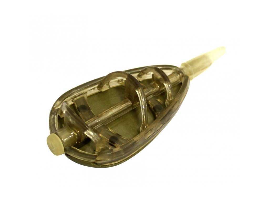 Perfektně zpracované method flat krmítko střední velikosti vhodné pro lov na method feeder nebo lehkou kaprařinu. Spolu s naší měkkou formičkou tvoří velmi praktický a oblíbený set pro každodenní rybolov. Jeho vynikajícími vlastnostmi jsou aerodynamický tvar pro přesné a daleké nahazování, dobrá fixace na dně a možnost vložit nástrahu s háčkem přímo do krmítka mezi žebra pro zvýšení šance na úlovek. Se stlačenou krmítkovou směsí nebo method mixem nahodíte krmítko skutečně daleko i za silnějšího větru. Díky svému tvaru drží krásně na dně i v proudící vodě. Součástí krmítka je rychlovýměnný klip pro rychlou výměnu návazce. Když klip vyjmete, tak můžete použít krmítko jako průběžné anebo zafixovat montáž s pevnostním obratlíkem velikosti 8, který přímo pasuje do krmítka.