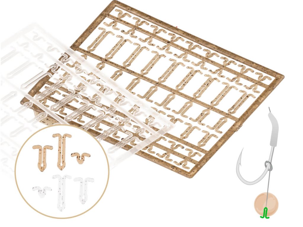 Balení obsahuje dvě sady zarážek: Jednu čirou a druhou transparentní hnědou pro dokonalé přizpůsobení nástraze.