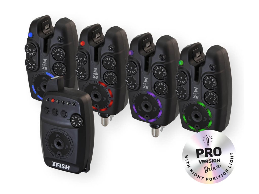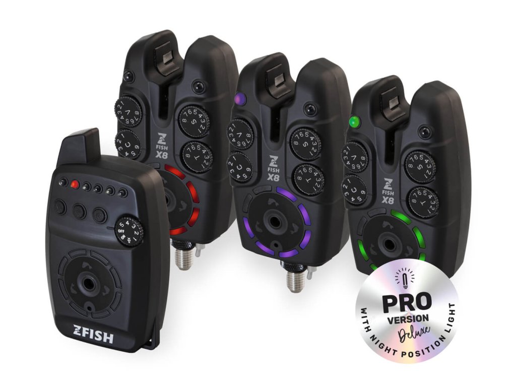 Nová generace hlásičů ZFISH Bite Alarm Zx8 PRO je nepochybně naše nová vlajková loď mezi hlásiči. Verze PRO představuje náš poslední nejvyspělejší model, při jehož vývoji jsme kladli důraz na odstranění všech nedostatků, které měla předchozí generace. Zx8 disponují 6-ti barvami a dokonce 8-mi zvukovými tóny (z nichž 2 jsou zcela unikátní hluboké tóny speciálně navržené pro noční rybolov) a navíc jsou opatřeny alarmem proti krádeži. Další užitečnou funkcí je paměťová dioda záběru, která vám umožní zjistit, zda jste měli “jízdu” (záběr vpřed), nebo takzvaný “padák” (zpětný záběr směrem k vám). Samozřejmostí jsou vibrace příposlechu a snadné nastavení celkové citlivosti a hlasitosti. Nové Zx8 byly testovány v extrémních podmínkách, takže za jejich odolnost proti vodě a prachu, můžeme dát ruku do ohně a navíc bez problémů fungují až na vzdálenost 200 m.